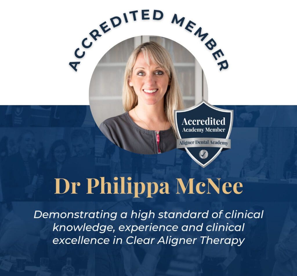 Dr Philippa McNee is a highly skilled clinician when it comes to clear aligners and Invisalign and the experience she has with Invisalign has been acknowledged with her membership to the Aligner Dental Academy